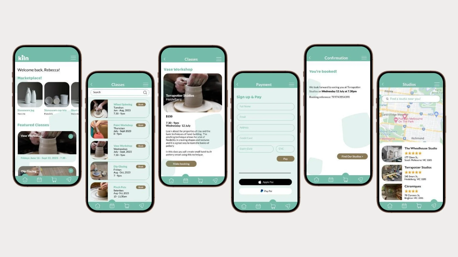 Design a authentic and memorable brand identity and mobile app for pottery enthusiasts, including a simple workshop booking platform.